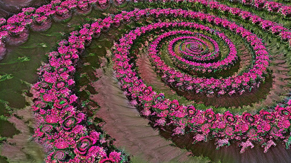 Smell the Roses begins with a single photographic image of flowers. The photograph functions not as a static reference but as a mutable dataset. The image was digitally altered to establish chromatic intensity and pattern density, forming the visual substrate for subsequent transformations.